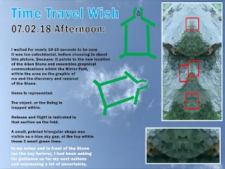July 5th, 2018: From the experiment Time Travel Wish (already successful the moment it was created and in process of The Drop Search): his is a category Drop Search\Alien Stone catch up audio note. Topics included are the Kerplop (down the cliff), a recent apparent sky communication by The Being (within) with 70% certainty. And a rule of acting on evidence. And what to do next. And an edit of validation of strong circumstantial evidence that the artifact The Eye is an emanating point for gravity well technology to have come from, but not all of the exhibited effects I’ve witnessed - just those involving gravity. Is The Eye the Drop (of technology left in the back of me in time, from the future, or from The Being for me to use on my person) I’ve been looking for since early in 2017? Likely.